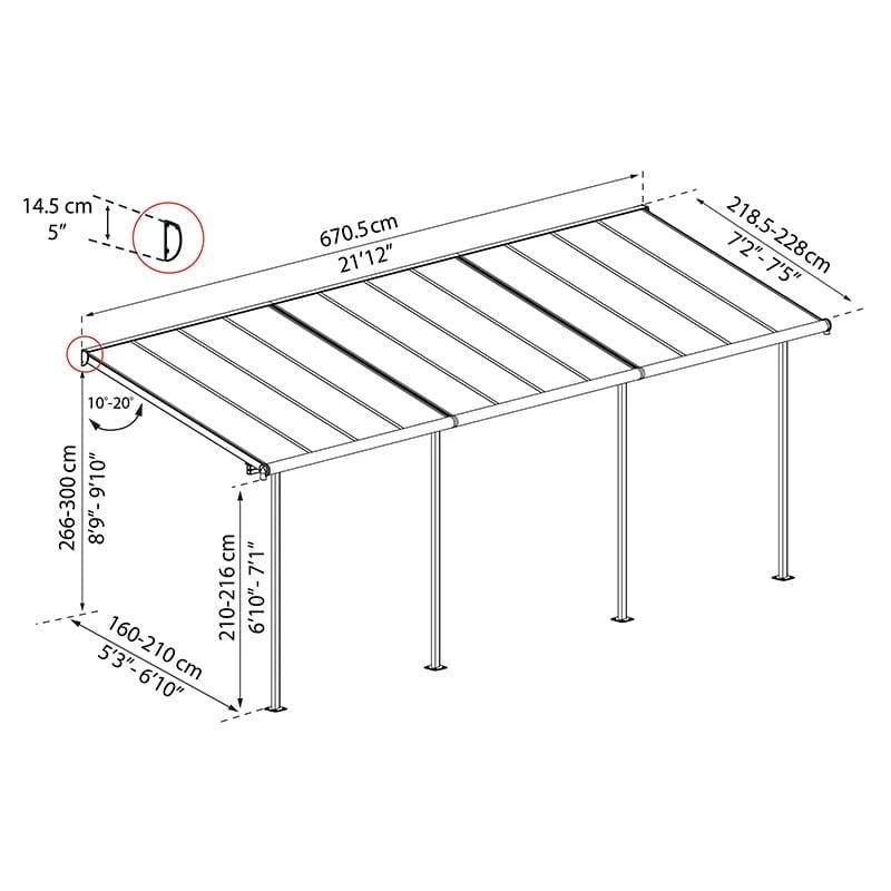 You can purchase a Palram Canopia patio cover, with the same premium specifications, in a range of sizes and with either a grey or white frame.