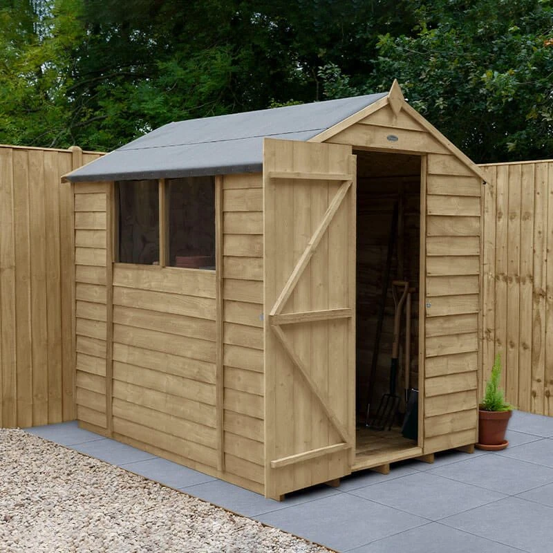 Available in a range of designs and sizes, Forest 4Life™ Overlap Pressure Treated Sheds are beautifully handcrafted here, in Great Britain. Packed full of premium features, they are the best range of overlap sheds Forest has ever made. This particular model is the 7×5 Apex Shed (2.19m x 1.64m), making it perfectly suited to general-purpose storage in most sizes of garden.