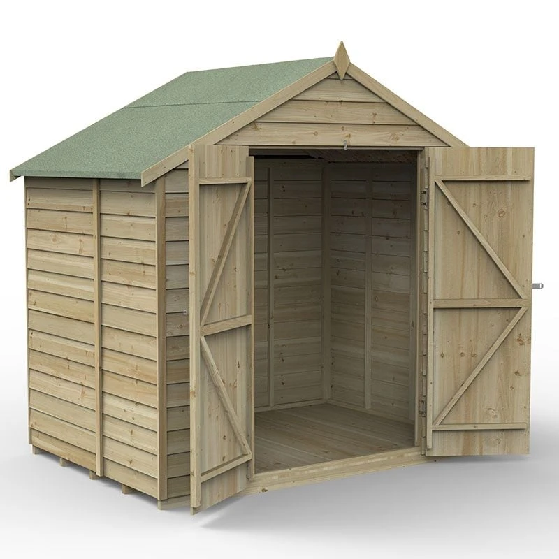 Available in a range of designs and sizes, Forest 4Life™ Overlap Pressure Treated Sheds are beautifully handcrafted here, in Great Britain. Packed full of premium features, they are the best range of overlap sheds Forest has ever made. This particular model is the 7×5 Windowless Double Door Apex Shed (2.32m x 1.53m), making it perfectly suited to people requiring secure outdoor storage in most sizes of garden.