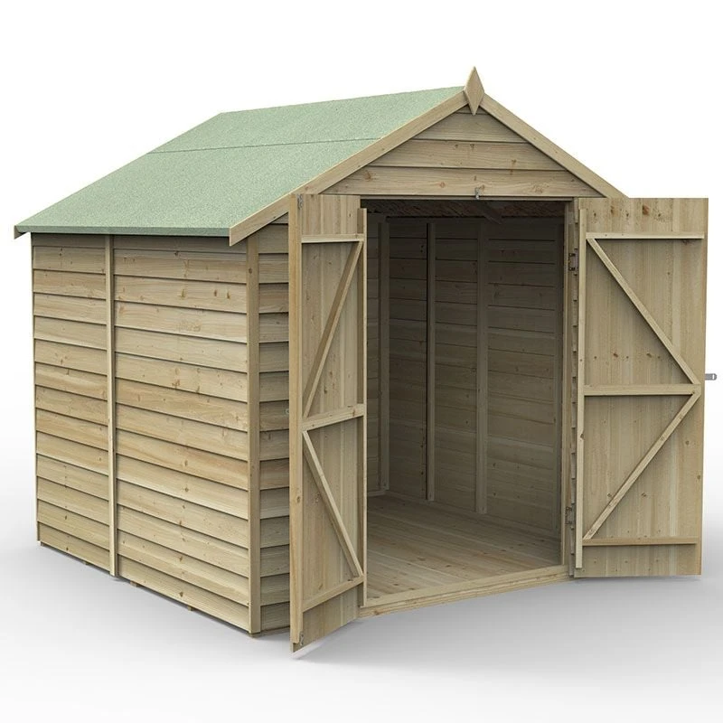 Available in a range of designs and sizes, Forest 4Life™ Overlap Pressure Treated Sheds are beautifully handcrafted here, in Great Britain. Packed full of premium features, they are the best range of overlap sheds Forest has ever made. This particular model is the 7×7 Windowless Double Door Apex Shed (2.32m x 2.12m), making it perfectly suited to people requiring secure outdoor storage in most sizes of garden.