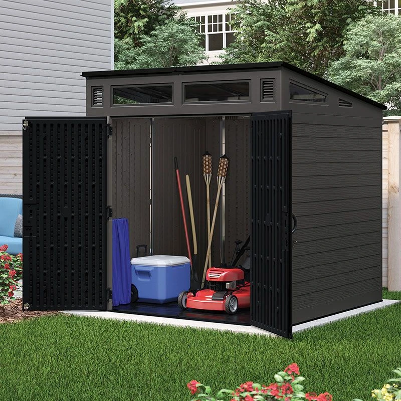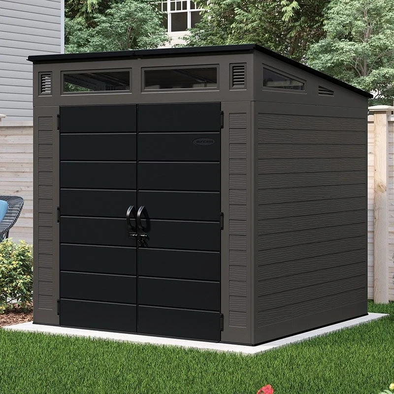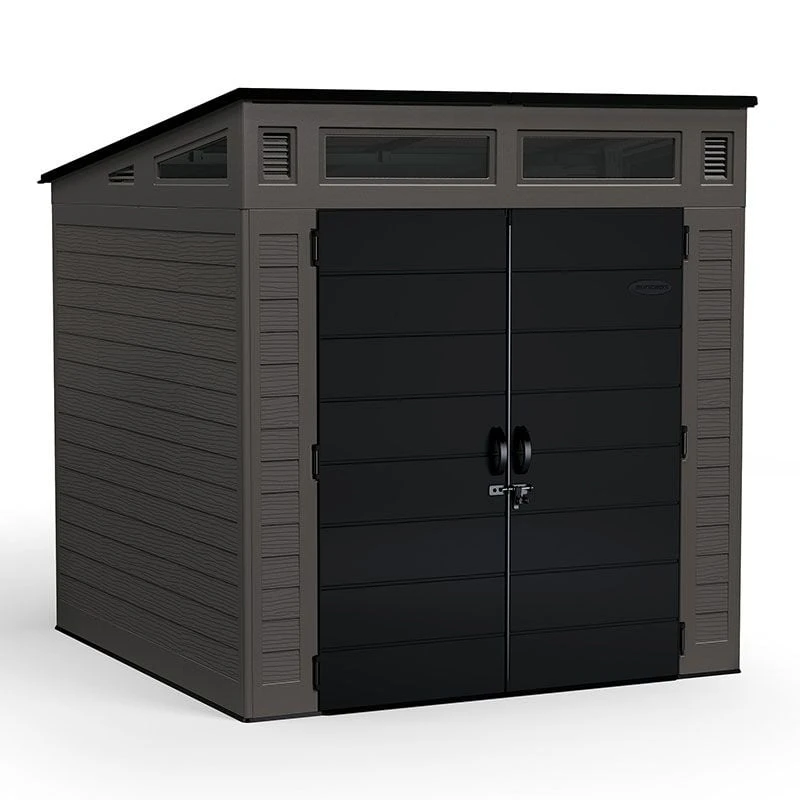 Offering robust and durable garden storage for your tools and equipment, the 7 x 7 Suncast Modernist Plastic Garden Storage Shed in Peppercorn (2.20m x 2.22m) has a wonderfully stylish design to suit any outdoor area.
