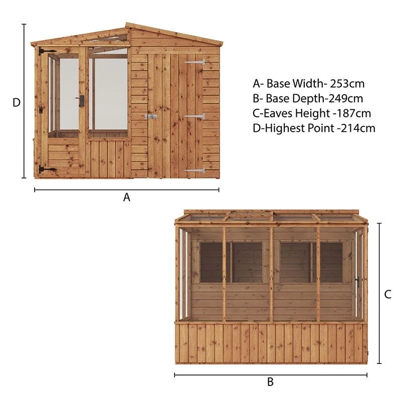 Especially designed for those of you who love spending time in your gardens, the 8’3 x 8’2 Mercia Wooden Combi Greenhouse offers you the garden storage benefits of a wooden shed and the specialised growing environment of a greenhouse.