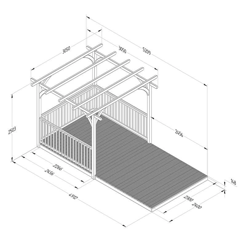 Featuring a pergola, 8×16 decked area and 3 x 8ft balustrades (approximate measurements), this decking kit offers a wonderful backdrop to all of your outdoor entertainment plans.