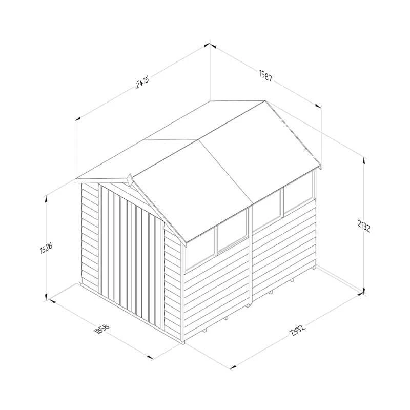 Available in a range of designs and sizes, Forest 4Life™ Overlap Pressure Treated Sheds are beautifully handcrafted here, in Great Britain. Packed full of premium features, they are the best range of overlap sheds Forest has ever made. This particular model is the 8×6 Double Door Apex Shed with 4 Windows (2.43m x 1.99m), making it perfectly suited to people requiring general-purpose storage in most sizes of garden.