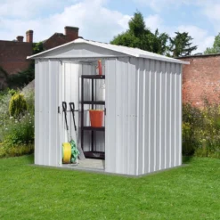 Boasting stylish good looks, a robust build and an impressive 10-year anti-rust guarantee, the 8×6 Yardmaster Silver Metal Shed is the perfect place to safely house your expensive tools, garden furniture and bicycles.