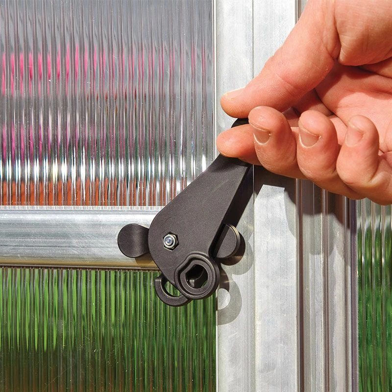 The aluminium frame and galvanised steel perimeter base are robust and resistant to rust for a maintenance free finish. Combined with the polycarbonate, the result is an eye-catching, near-unbreakable greenhouse which will maintain its effectiveness and attractive appearance for years to come. The structure has been snow-load tested to 100kg/ m² (20.5lbs/ ft²), wind resistant to 100km/ hr (62ml/ hr), and with a bell-shaped roof for optimium wind-resistance and effective rain or snow runoff, this polycarbonate greenhouse will help your plants thrive, whatever nature throws at it.