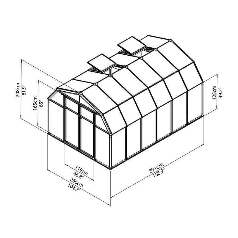 - 4mm twin-wall polycarbonate roof panels and 6mm twin-wall polycarbonate side panels allow 82% light transmission