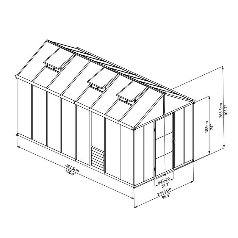 Help your homegrown produce thrive by purchasing the superb 8×16 Palram Canopia Glory Greenhouse (2.4m x 4.8m) – a high-specification polycarbonate glasshouse, providing unbeatable weatherproof protection.