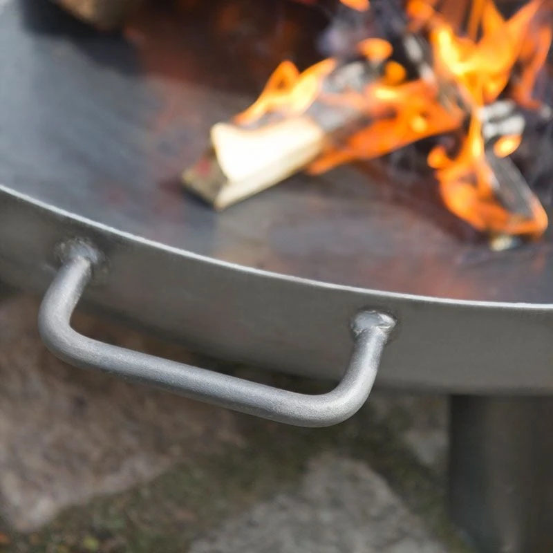 This garden fire bowl has a low centre of gravity and robust supporting legs. With a diameter of 100cm, high sides and a concave shape, it will keep your firewood securely inside the bowl, burning efficiently. This outdoor fire bowl is also fitted with 2 sturdy handles, so you can easily move it to wherever you are relaxing in the garden.