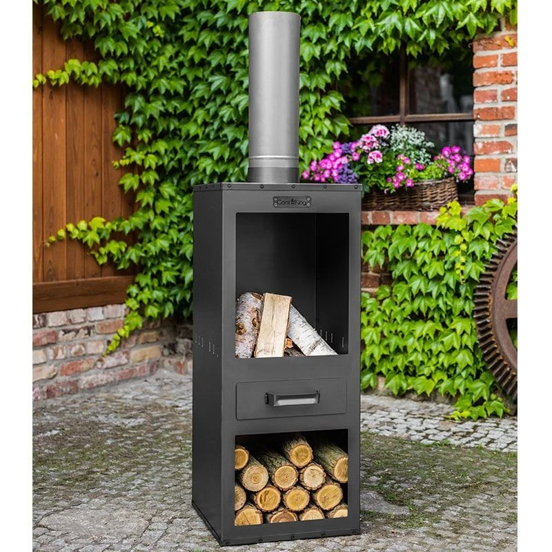 The ideal fire pit to warm a chilly evening outdoors, the Cook King Rosa Garden Stove Fire Pit and Logstore stands 5 feet tall and will keep your fire burning late into the night.