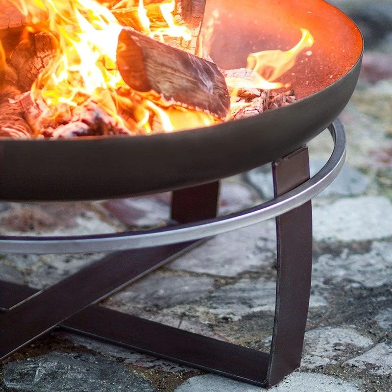 This garden fire bowl has a low centre of gravity and robust supporting legs. With a diameter of 80cm, high sides and a concave shape, it will keep your firewood securely inside the bowl, burning efficiently. This outdoor fire bowl is also fitted with a large handle, which wraps right around the circumference of the fire pit, so you can easily move it to wherever you are relaxing in the garden.