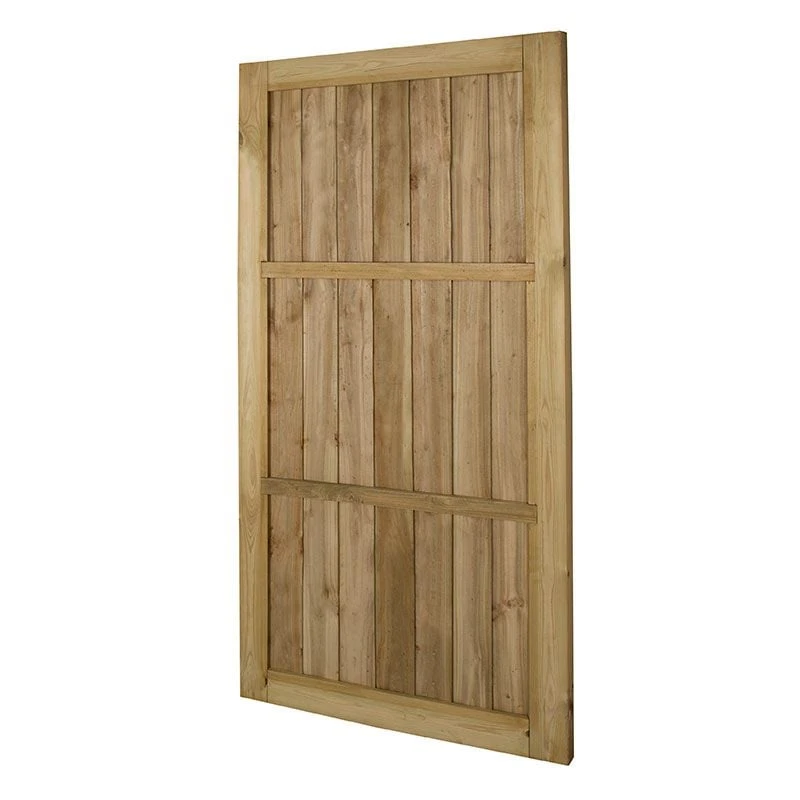 The gate features thick vertical overlapping boards mounted in a strong surrounding frame for even greater stability. Its heavy-duty construction offers your garden privacy and security.