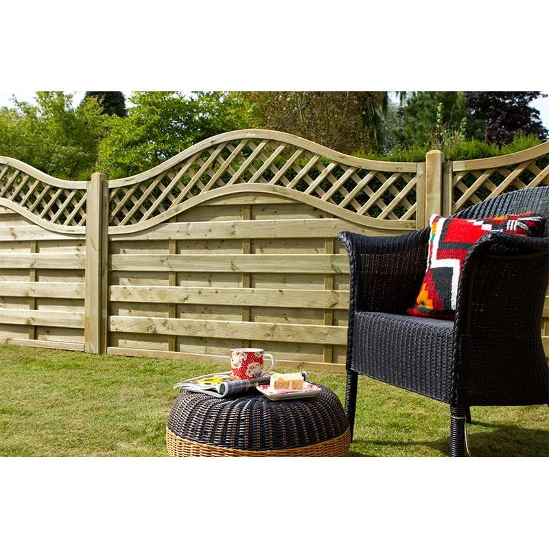With its superb 15-year anti-rot guarantee, sumptuous curves and attractive trellis top, it’s easy to see why the Forest 6×3 Pressure Treated Prague Decorative Europa Fence Panel (1.8m x 0.9m) is one of our bestselling decorative fence panels.