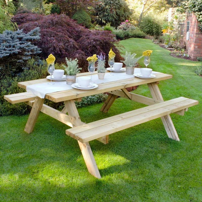 There is nothing more classic for outdoor dining and BBQs than a picnic table. This picnic table, with generous benches of 177cm, seats up to 8 adults.