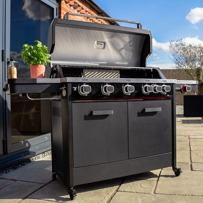 Expertly constructed from aluminium and heavy-duty steel, this eye-catching gas BBQ is operated by electronic ignition and comes with ergonomic controls. So, whether you’re a budding BBQ chef or experienced barbecue connoisseur, you can have complete confidence in cooking exquisite alfresco meals.