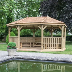 20’x15′ (6×4.7m) Premium Wooden Furnished Garden Gazebo With Timber Roof – Seats Up To 27 People