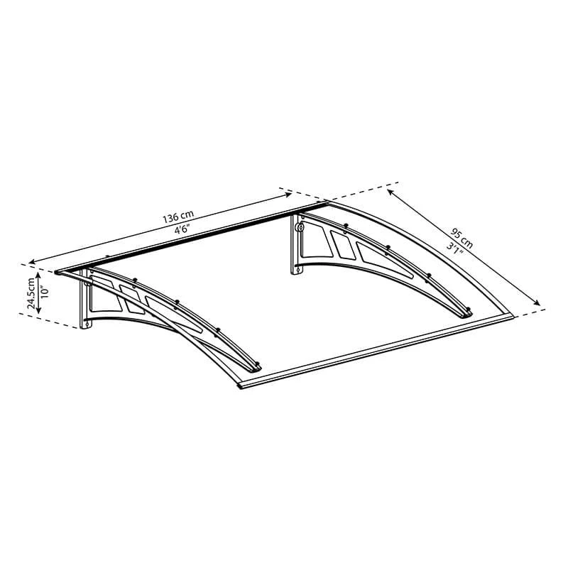 This high-impact door canopy is wind resistant to 100km/ hr (62ml/ hr) and snow-load tested to 80kg/ m² (16.4lbs/ ft²), so offers exceptional weatherproof protection for your front door.